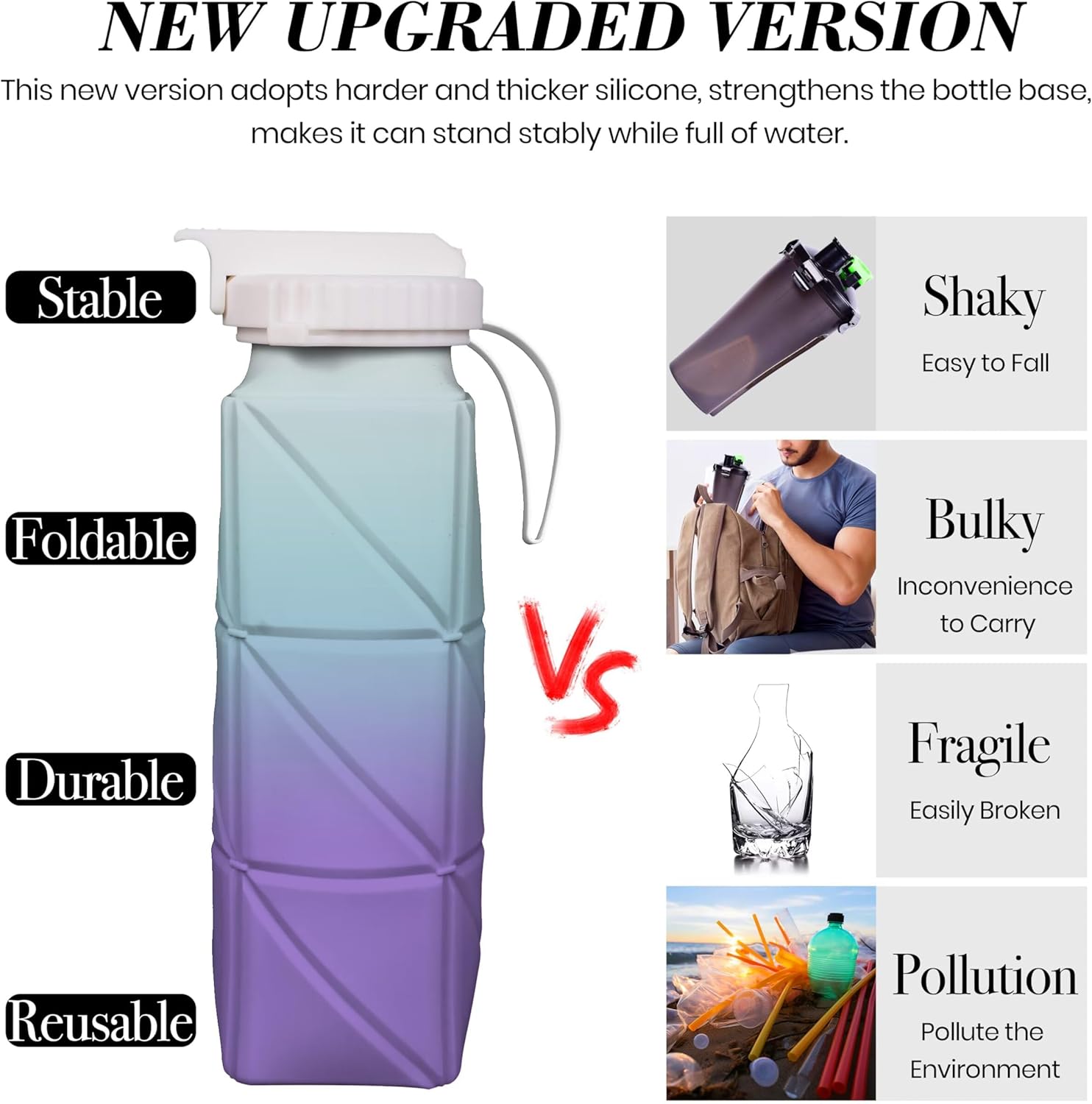 Collapsible Travel Water Bottle18oz, Reuseable Silicone Foldable Water Bottles for Gym Camping Hiking, Portable Leak Proof Sports Water Bottle with rugby Carabiner (Green)